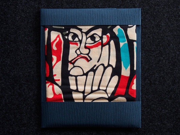 森義利は、自らの来歴でもある染め物からヒントを得て、和染めでは一般的な「渋紙」を使用し、合羽摺りを創造いたしました。